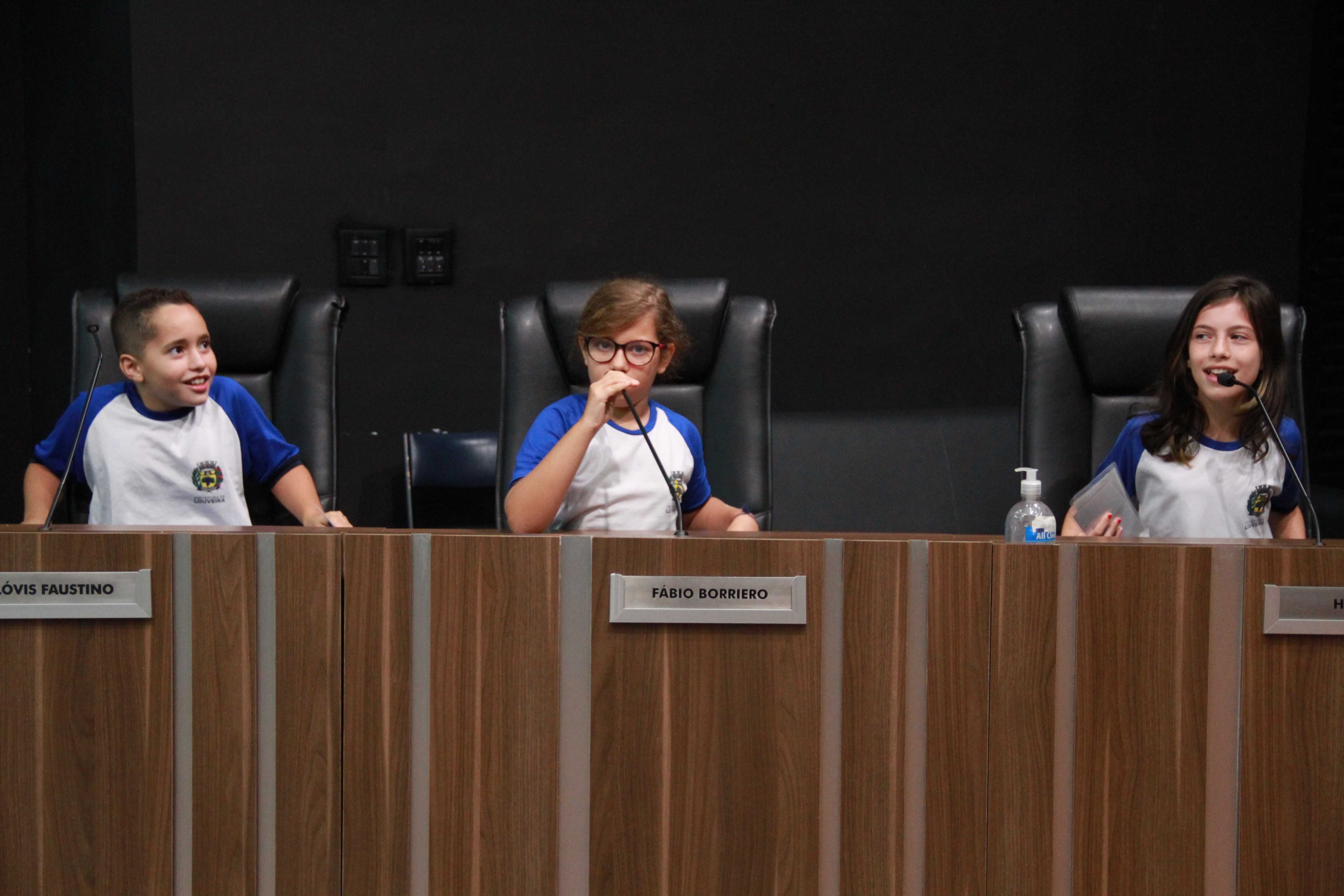 Os vereadores Clayton Finamore (PSD), Clóvis Faustino (MDB), Gilberto Piska (MDB) e Leandro Lourençon (Republicanos) também estavam na Câmara e receberam as crianças em seus gabinetes.