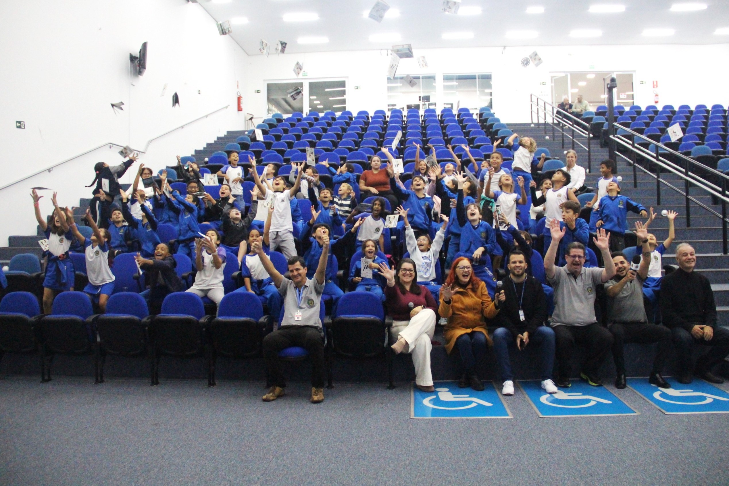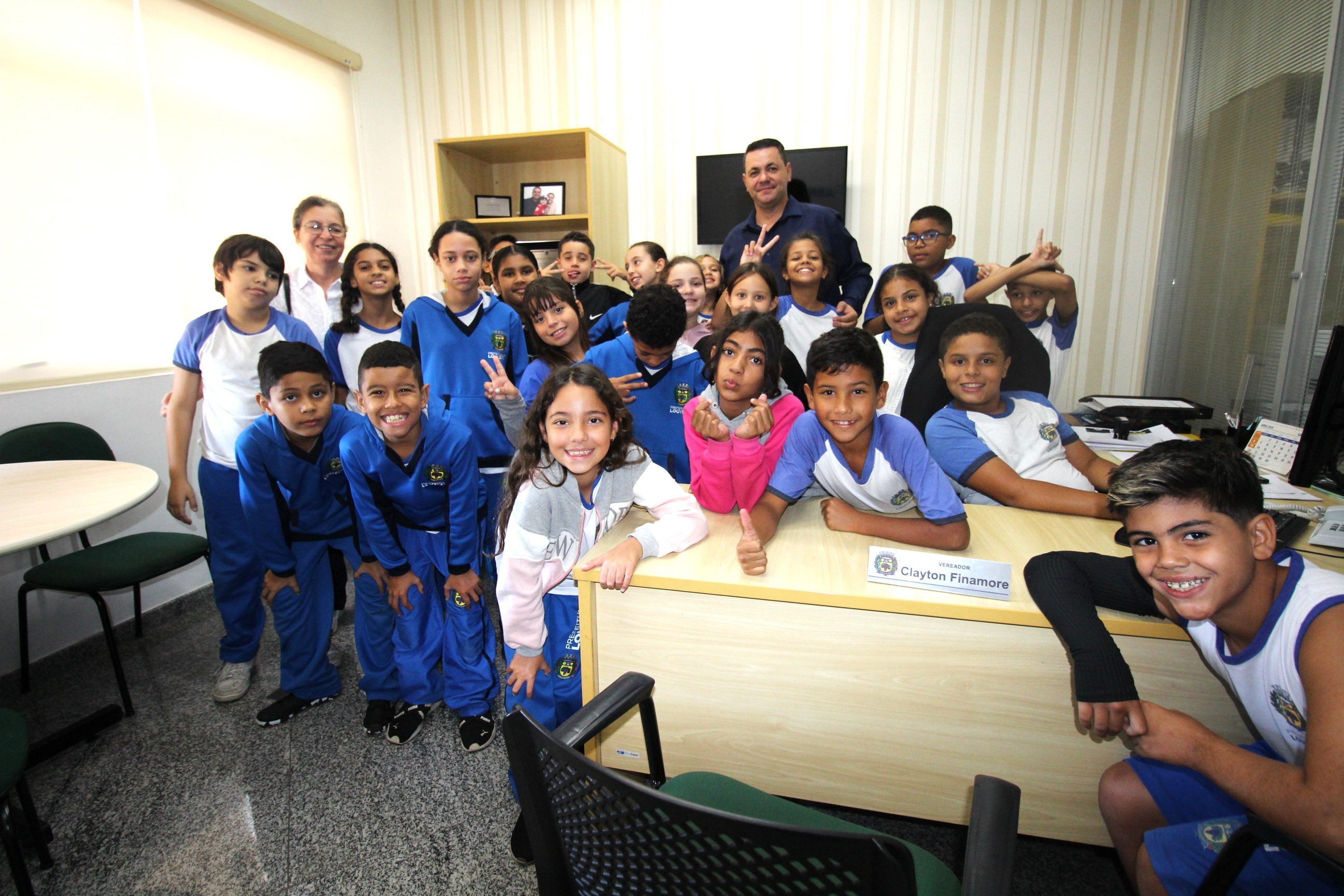 No auditório, assistem a um vídeo especialmente preparado com linguagem adequada ao público infantil. Receberam informações sobre o trabalho do vereador, o funcionamento de uma Câmara Municipal e as diferenças entre os três poderes. Os vereadores Julio Cezar e Clayton Finamore receberam e conversaram com os alunos em seus gabinetes.