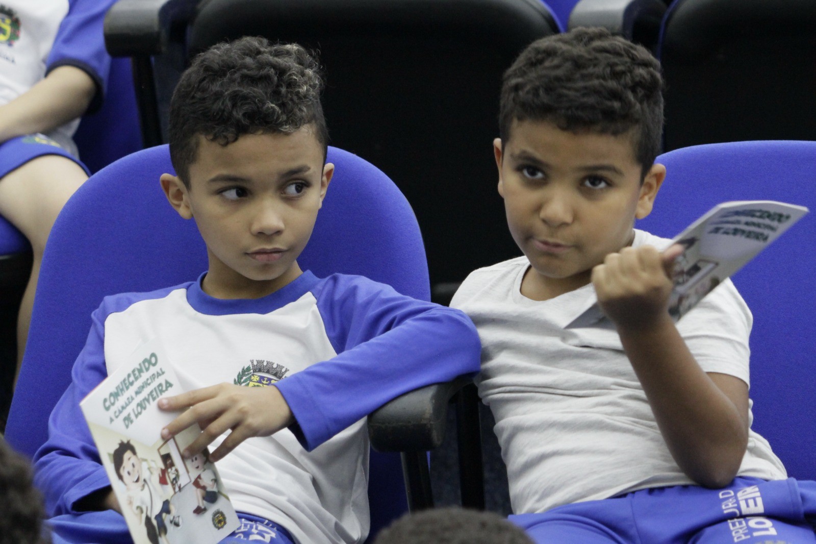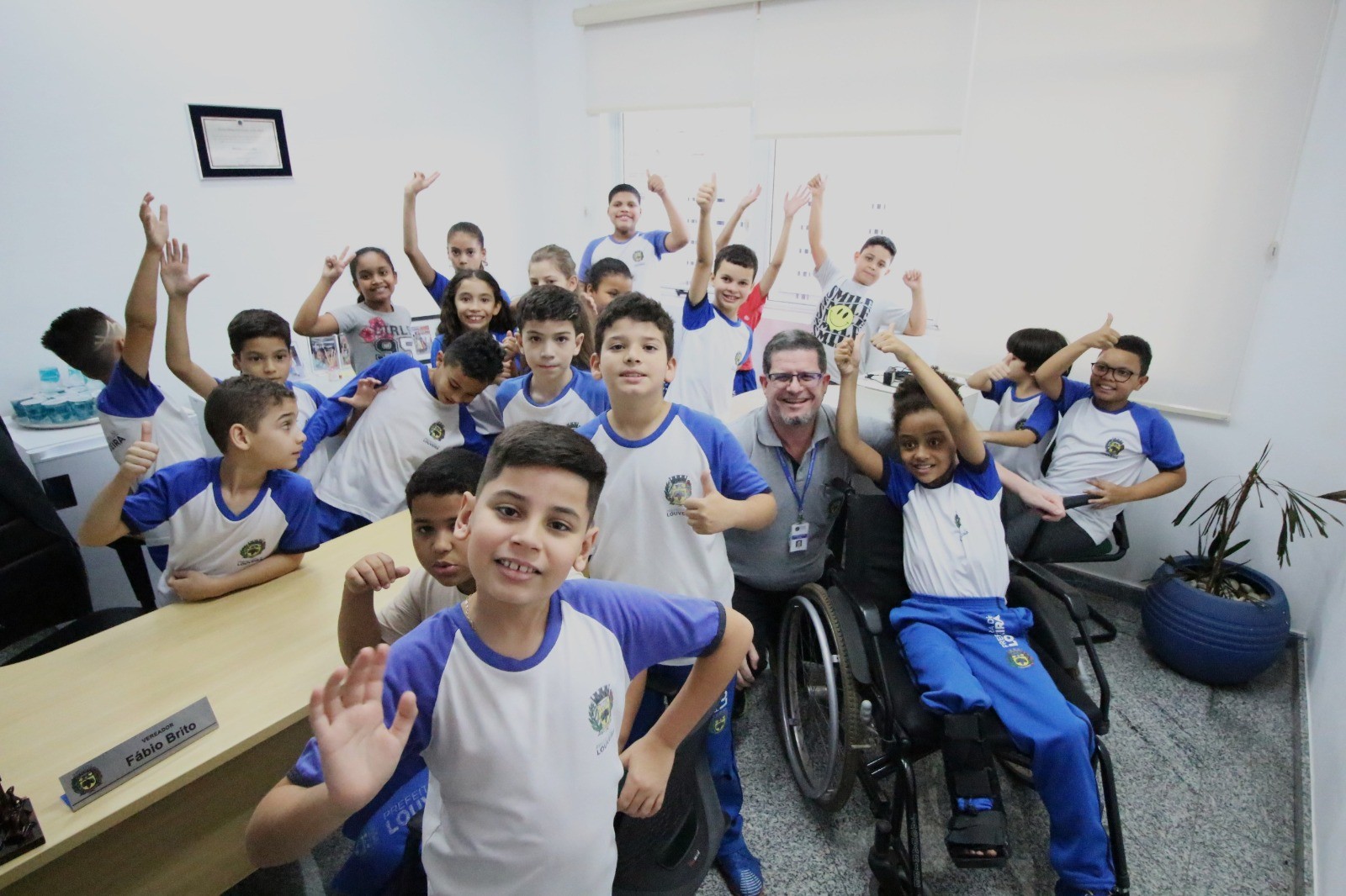 As crianças pertencem às turmas do 4º ano B e C e foram recebidas pelos servidores públicos da Casa. Já no primeiro contato, percebia-se a emoção e ansiedade estampadas nos rostos dos pequenos. Após as orientações iniciais, subiram até a sala da presidência e visitaram o estúdio de TV. Ficaram entusiasmados com as instruções de como se grava um programa, conversaram com os servidores, percorreram os corredores da Casa e receberam informações sobre a função de um vereador e a divisão dos três poderes. No auditório Vereador Jacyr Dinofre assistiram a um vídeo especialmente feito para a faixa etária das crianças e, logo após, visitaram os demais gabinetes dos vereadores. Na Casa, foram recebidos pelos vereadores Clóvis Faustino, Juarez Mineiro, Helinho e Leandro Lourençon.