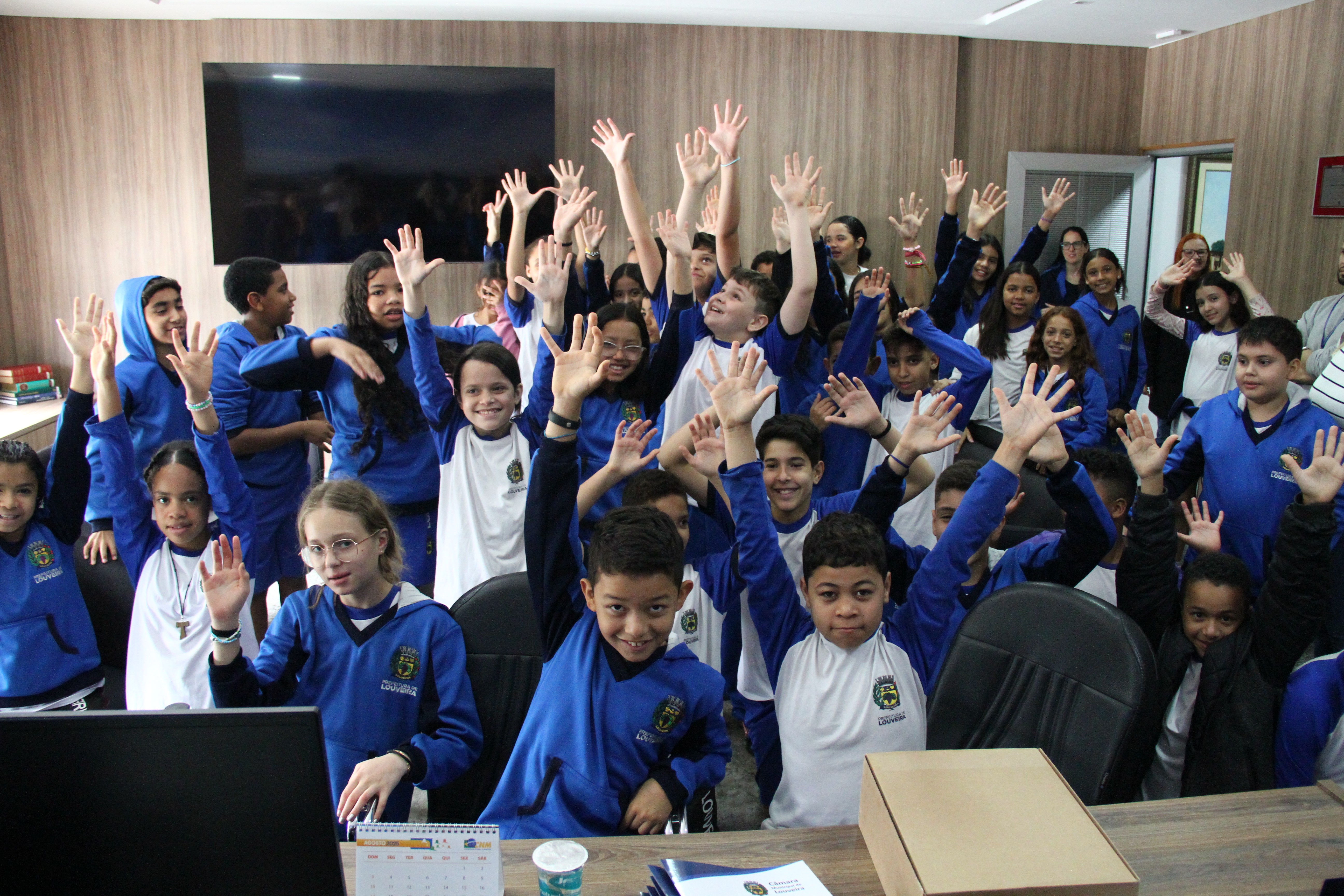 E semanalmente, toda quarta-feira, a Câmara de Louveira se transforma em extensão educacional e cultural, com ações que promovem a cidadania para o público da rede municipal de ensino. Na manhã deste dia 24, aproximadamente 50 alunos da EMEB Frederico Pagotto tiveram a oportunidade de participar do Conhecendo a Câmara, programa do Poder Legislativo local que promove visitação guiada.