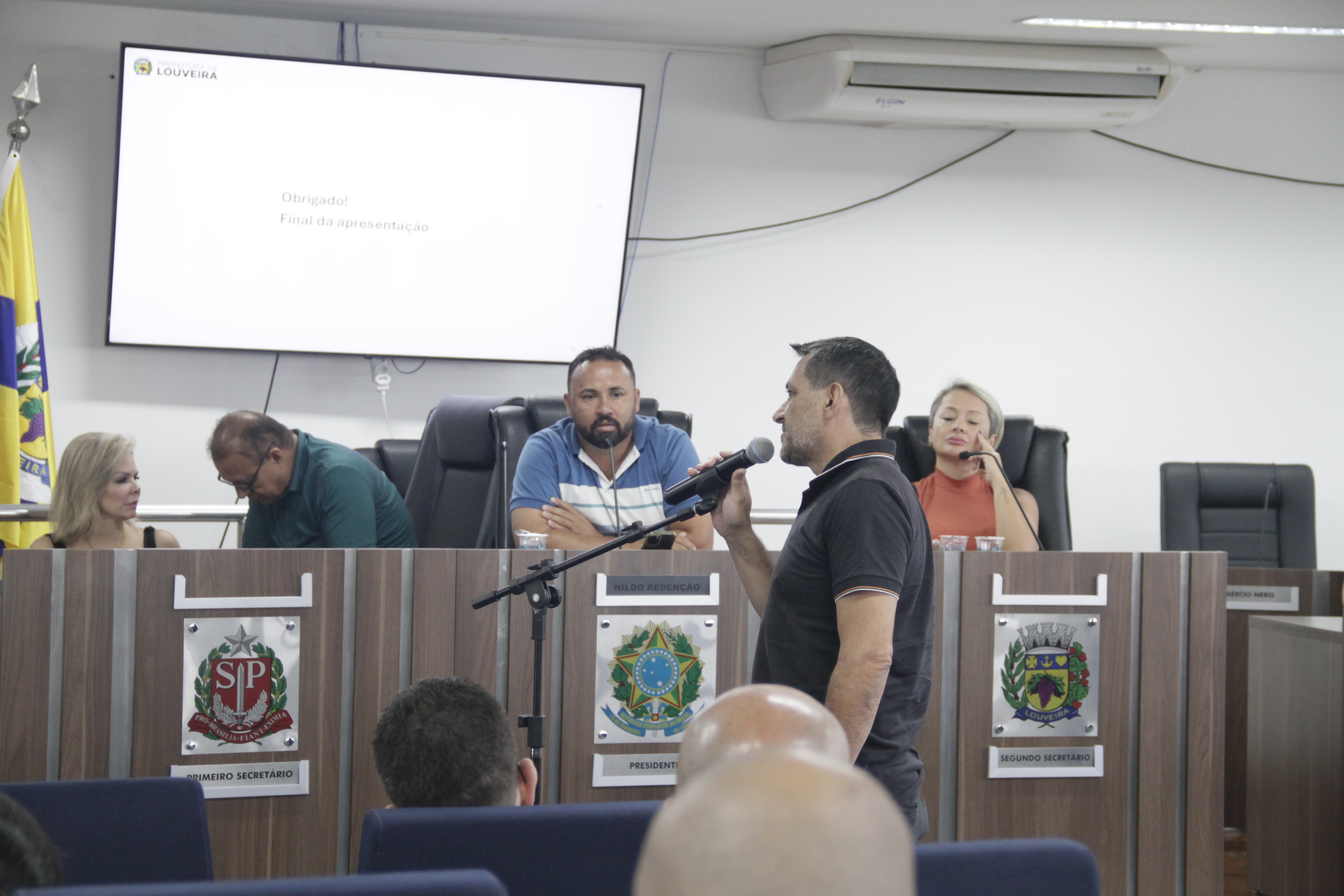 Alguns vereadores fizeram questionamentos pontuais sobre o parcelamento do solo, como Clodoaldo, Fábio e Laércio. Logo após, houve a abertura para questionamento do público. O primeiro a se manifestar foi o pastor Neilson que pediu informações sobre as permissões de instalação de templos religiosos nos bairros. Outro morador a se manifestar identificou-se como Adalberto Biasi, do bairro Abadia. Em sua manifestação, demonstrou total indignação em relação ao bairro onde residente que, segundo ele, é penalizado por ser uma espécie de “Amazônia de Louveira”, onde tudo é proibido em nome da preservação ambiental, enquanto os demais bairros se beneficiam. Ele deixou claro que não é contra a preservação, mas que é preciso que o poder público divida a responsabilidade de proteção ambiental para todo o munícipio. Segundo ele, o bairro é formado em sua maioria por agricultores que sofrem com a desvalorização das terras em comparação aos demais bairros da cidade e que essa discrepância produz variações inaceitáveis de desenvolvimento a custa de apenas alguns moradores.