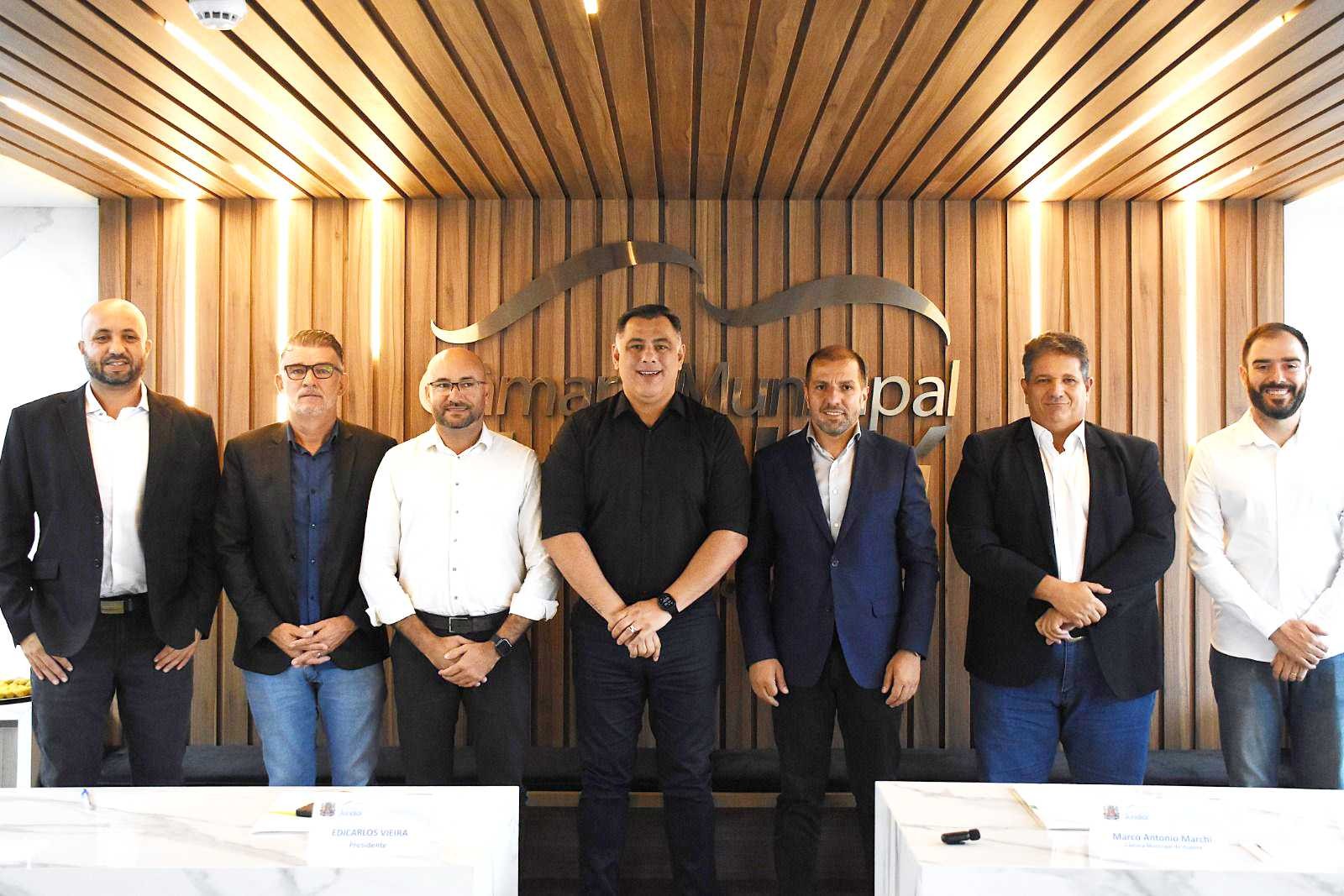 O presidente da Câmara de Louveira, vereador Kaká Rodrigues (PL), participou do encontro entre presidentes dos poderes legislativos dos municípios que fazem parte da Região Metropolitana de Jundiaí (RMJ), com o objetivo de debater temas de interesse comum. Além de Kaká Rodrigues, também participaram da reunião os presidentes Edicarlos Viera (Jundiaí), Marcão Marchi (Itupeva) Eliseo Notário (Várzea Paulista), Davi Bueno (Itatiba), Rogério Sapão (Jarinu) e Rodrigo Santi (Cabreúva). A reunião ocorreu em Jundiaí, na última quarta-feira, 22.