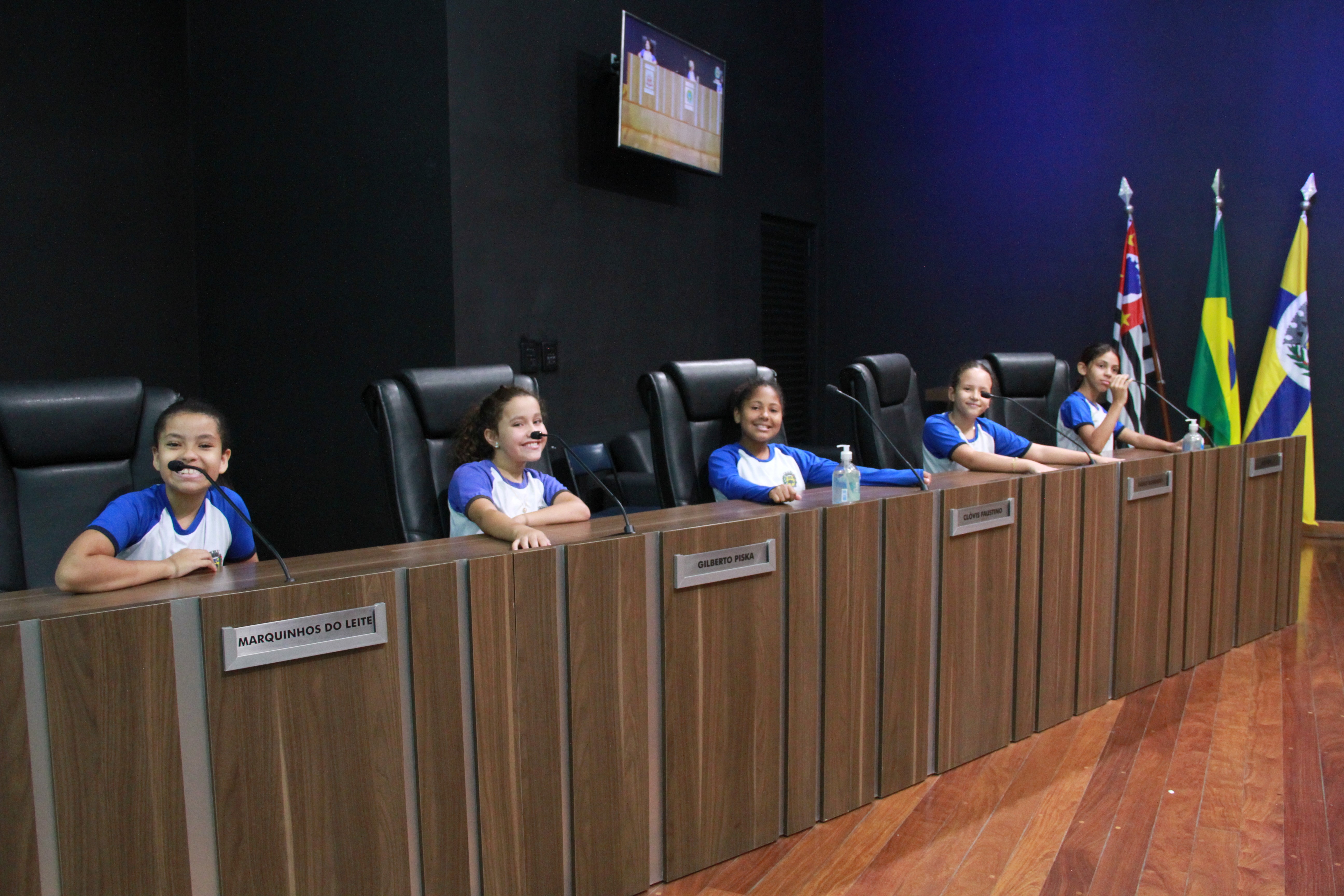 Os vereadores Clayton Finamore (PSD), Clóvis Faustino (MDB), Gilberto Piska (MDB) e Leandro Lourençon (Republicanos) também estavam na Câmara e receberam as crianças em seus gabinetes.