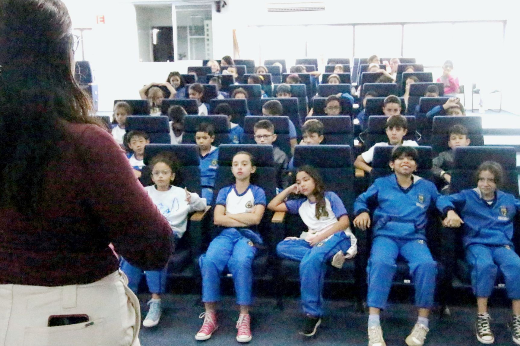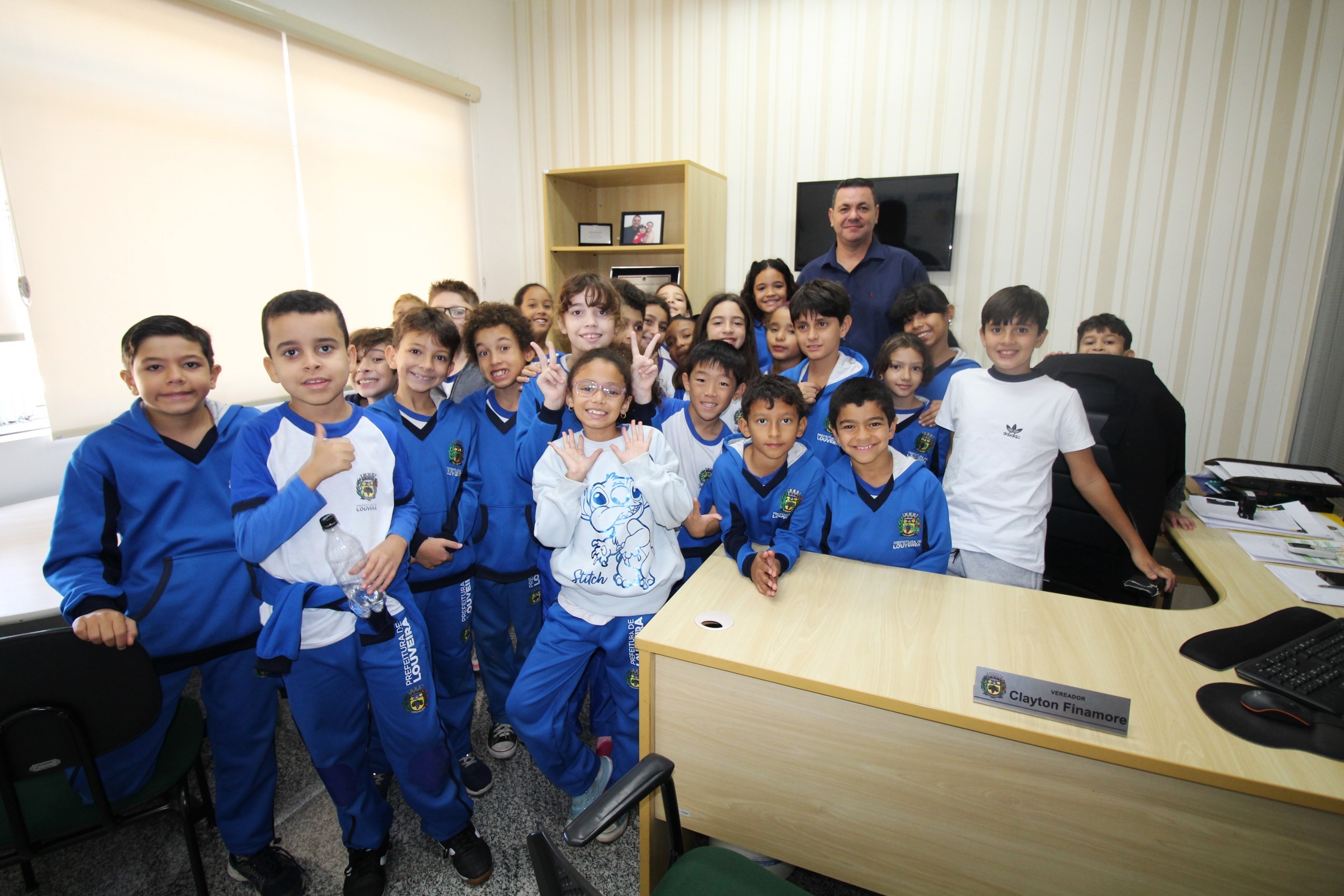 No auditório, assistem a um vídeo especialmente preparado com linguagem adequada ao público infantil. Receberam informações sobre o trabalho do vereador, o funcionamento de uma Câmara Municipal e as diferenças entre os três poderes. Os vereadores Julio Cezar e Clayton Finamore receberam e conversaram com os alunos em seus gabinetes.