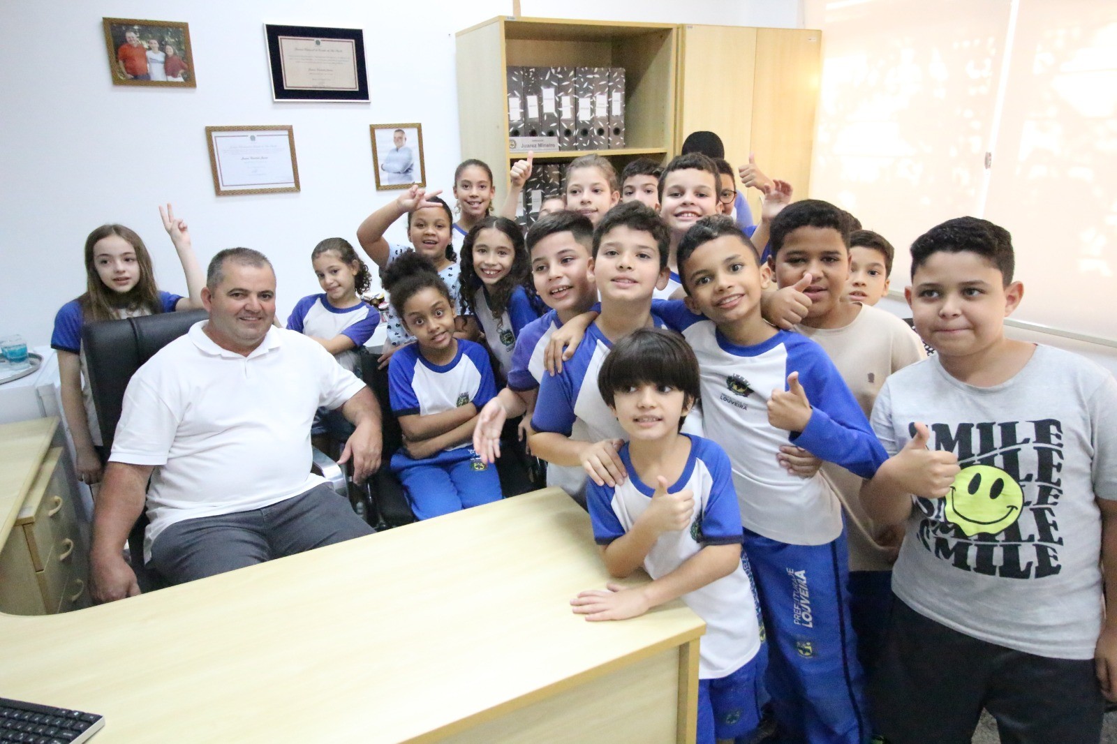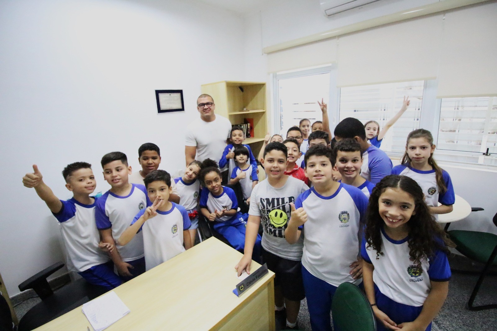 As crianças pertencem às turmas do 4º ano B e C e foram recebidas pelos servidores públicos da Casa. Já no primeiro contato, percebia-se a emoção e ansiedade estampadas nos rostos dos pequenos. Após as orientações iniciais, subiram até a sala da presidência e visitaram o estúdio de TV. Ficaram entusiasmados com as instruções de como se grava um programa, conversaram com os servidores, percorreram os corredores da Casa e receberam informações sobre a função de um vereador e a divisão dos três poderes. No auditório Vereador Jacyr Dinofre assistiram a um vídeo especialmente feito para a faixa etária das crianças e, logo após, visitaram os demais gabinetes dos vereadores. Na Casa, foram recebidos pelos vereadores Clóvis Faustino, Juarez Mineiro, Helinho e Leandro Lourençon.