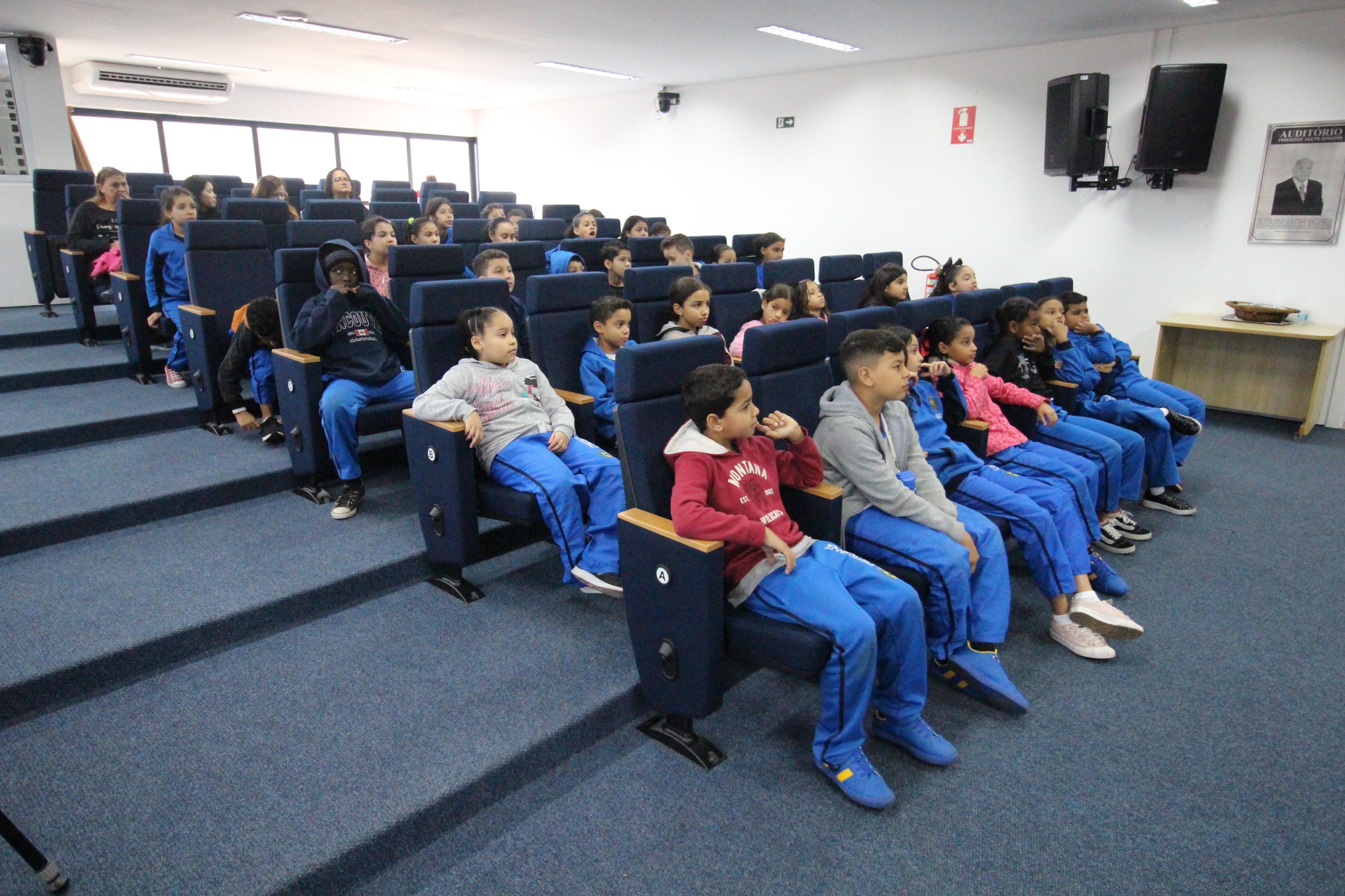 Um vídeo com linguagem infantil é apresentado para reforçar os ensinamentos. Todo o percurso é acompanhado por servidores que fazem parte da Escola e integrantes da Brigada de Incêndio da Câmara. No plenário, as crianças batem mais um papo e são convidadas para ocuparem as cadeiras dos vereadores no Plenário Vereador José Chiquetto.