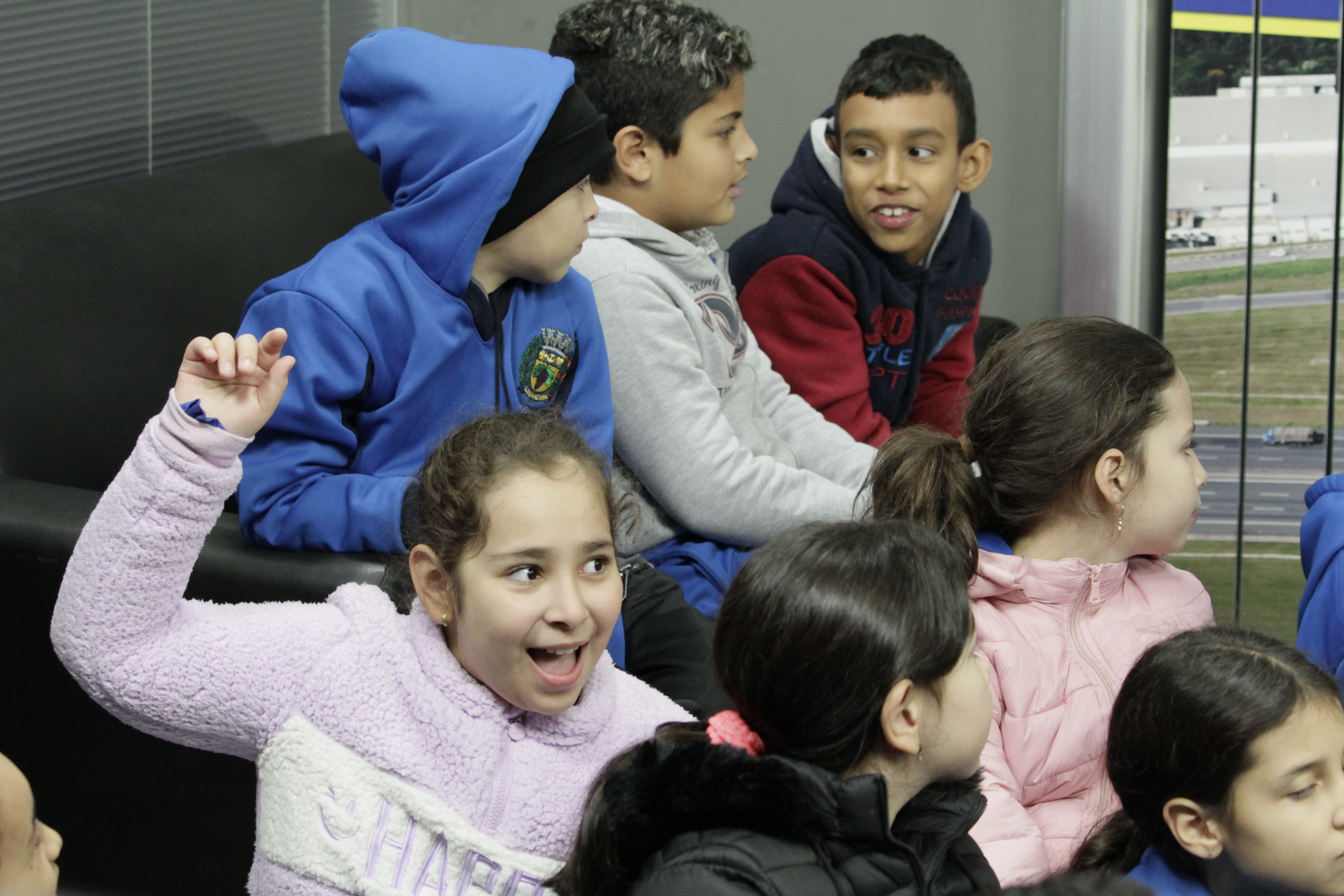 Após serem recepcionados, os alunos da Frederico Pagotto foram conhecer a sala da presidência, as salas administrativas, o estúdio de TV e os gabinetes dos demais vereadores. No dia de hoje, o vereador Clayton conversou com as crianças.